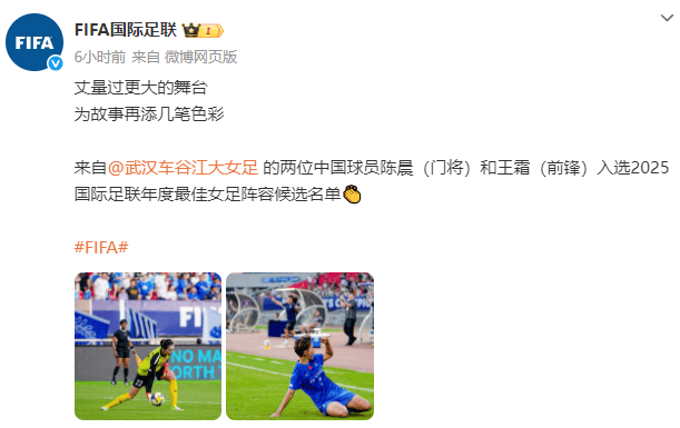 สองนักฟุตบอลหญิงชาวจีนจากสโมสรฟุตบอลหญิงอู่ฮั่น เชอคู เจียงต้า เฉิน เฉิน (ผู้รักษาประตู) และหวัง ซวง (กองหน้า) ได้รับการเสนอชื่อเข้าชิงรางวัลทีมฟุตบอลหญิงยอดเยี่ยมแห่งปีของฟีฟ่า ประจำปี 2025