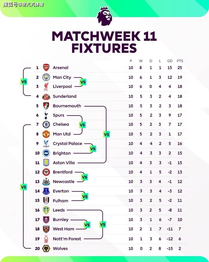 สุดสัปดาห์นี้ จะมีการแข่งขันในรอบที่ 11 ของพรีเมียร์ลีกเกิดขึ้น ก่อนการแข่งขัน ทางพรีเมียร์ลีกได้เผยแพร่ภาพอินโฟกราฟิกที่ชัดเจน แสดงอันดับในลีกของทีมที่เกี่ยวข้องกับการแข่งขันในรอบนี้