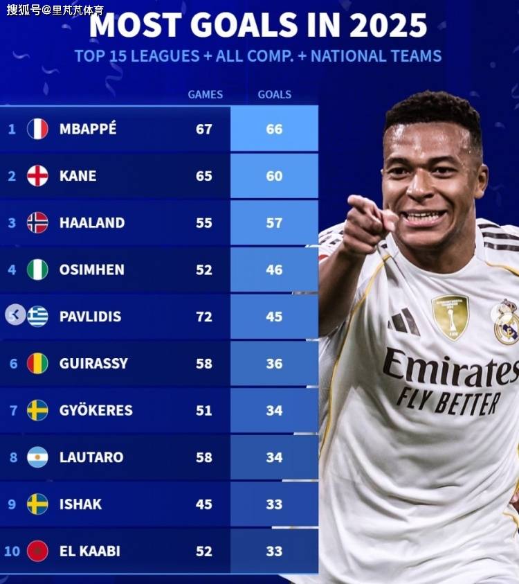 ปี 2025 ได้ผ่านไปแล้ว และ Transfermarkt ได้รวบรวมสถิติเกี่ยวกับจำนวนประตูทั้งหมดที่ทำได้โดยผู้เล่นจากลีกชั้นนำ 15 อันดับแรกในทุกการแข่งขันทั้งในระดับสโมสรและทีมชาติ โดย Kylian Mbappé กองหน้าของ Real Madrid นำเป็นอันดับหนึ่งในการจัดอันดับนี้