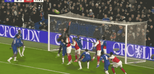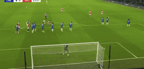 ในนาทีที่ 24 เอนโซ่ของเชลซีทำฟาวล์โอเดการ์ดในครึ่งสนามของตัวเอง ทำให้อาร์เซนอลได้ลูกฟรีคิก การส่งบอลของโอเดการ์ดถูกเคลียร์ออกไป และลูกวอลเลย์ของซัวเรซลอยข้ามคานออกไป
