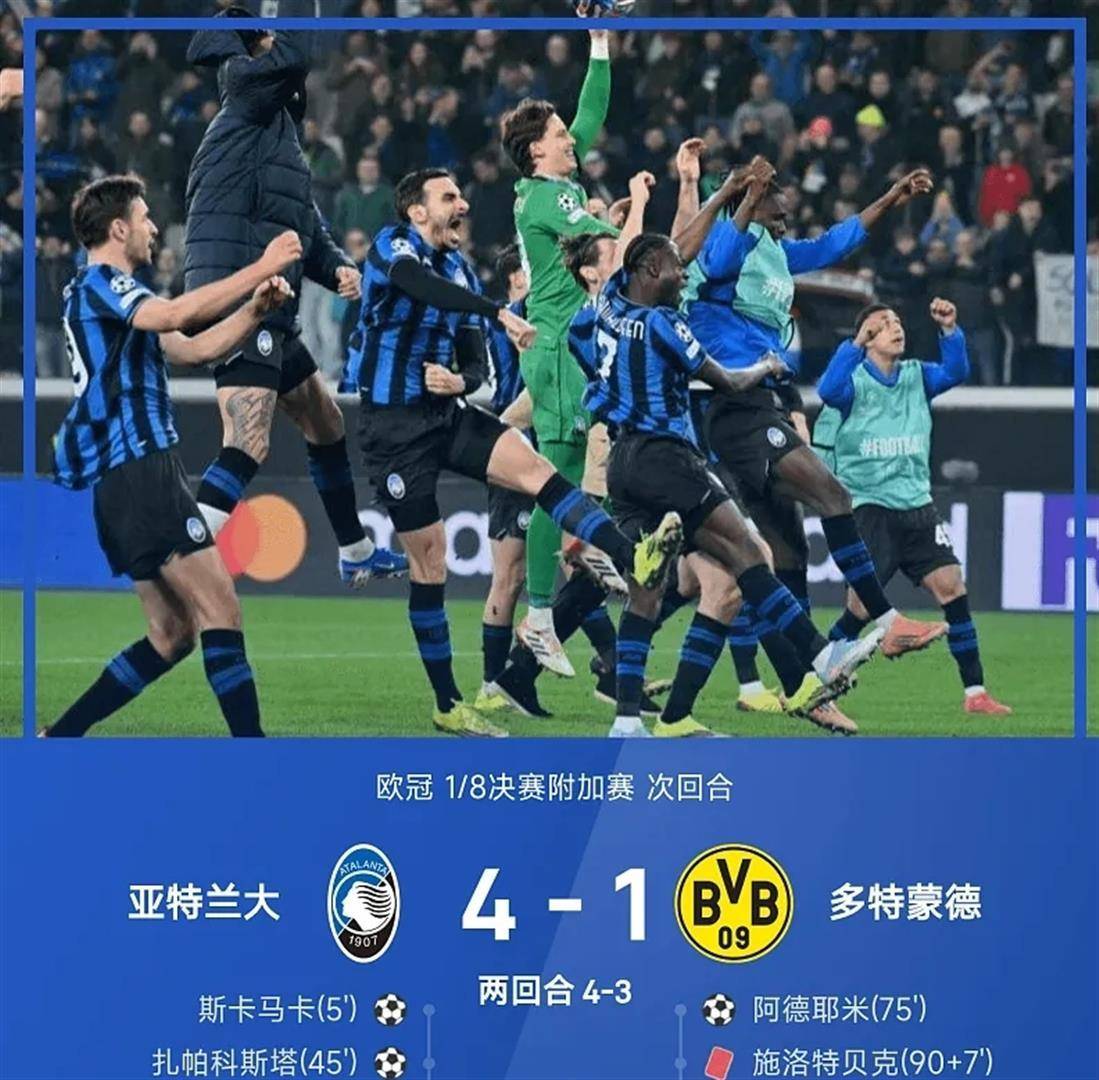 แรงกดดันมหาศาลตกอยู่บนบ่าของกองกลางทีมอตาลันต้า ซามาร์ดซิช ยืนอยู่ที่จุดโทษ เขาวิ่งขึ้นและยิงลูกอย่างรุนแรง! ลูกบอลพุ่งเข้าไปในมุมบนซ้ายเหมือนลูกปืนใหญ่ แม้ว่าโคเบลจะเดาทิศทางถูก แต่เขาก็ไม่สามารถหยุดมันได้ 4-1! คะแนนรวมตอนนี้อยู่ที่ 4-3! ณ ขณะนี้ นาฬิกาได้เดินผ่านนาทีที่ 98 และ 54 วินาทีแล้วประตูนี้ทำลายสถิติของคริสเตียโน โรนัลโดในปี 2018 กลายเป็นผู้ชนะล่าสุดในประวัติศาสตร์รอบน็อคเอาท์ของแชมเปียนส์ลีก เมื่อเสียงนกหวีดสุดท้ายดังขึ้น สนามกีฬาที่เต็มไปด้วยสีน้ำเงินก็ระเบิดออกมาด้วยความคลั่งไคล้อย่างสุดขีด อาตาลันต้าได้ทำภารกิจกลับมาอย่างเหลือเชื่อและยิ่งใหญ่ กลายเป็นทีมแรกในรอบเจ็ดปีที่พลิกสถานการณ์จากการตามหลังสองประตูในนัดแรกในรอบน็อคเอาท์ของแชมเปียนส์ลีกได้สำเร็จสำหรับโบรุสเซีย ดอร์ทมุนด์ นี่เป็นครั้งแรกในประวัติศาสตร์ที่พวกเขาตกรอบจากแชมเปียนส์ลีกหลังจากนำอยู่สองประตูในนัดแรก หลังจบการแข่งขัน โคเบล ผู้รักษาประตูของดอร์ทมุนด์ เต็มไปด้วยความรู้สึกผิดต่อตนเอง ยอมรับความรับผิดชอบเต็มที่สำหรับความผิดพลาดสุดท้าย ในขณะเดียวกัน เบนเซบายิน กลายเป็นจุดศูนย์กลางที่น่าเสียดายของแมตช์นี้ โดยมีส่วนร่วมโดยตรงกับทั้งสามประตูของฝ่ายตรงข้ามจากความผิดพลาดของตัวเอง การเบี่ยงเบน และเสียจุดโทษ