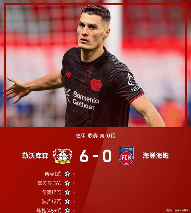 ในวันเดียวกันนั้น ไบเออร์ เลเวอร์คูเซ่น ถล่มไฮเดนไฮม์ 6-0 ในบ้าน ในครึ่งแรก แพทริค ชิค ทำประตูแรกหลังจากเพียงสองนาที ฟลอเรียน ฮอฟมันน์ และ ชิค ทำประตูเพิ่มเติมเพื่อสร้างการนำในช่วงต้น โรเบิร์ต พุค และ เควิน มาซซา ทำประตูเพิ่มขยายความได้เปรียบเป็น 5-0 ในครึ่งหลัง มาซซา ทำประตูอีกครั้งเพื่อปิดฉากชัยชนะอย่างถล่มทลาย 6-0 ให้กับเลเวอร์คูเซ่น