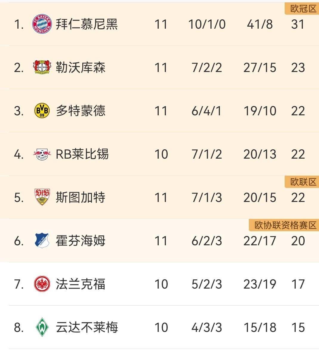 หลังจากการแข่งขันรอบนี้ ตารางคะแนนบุนเดสลีกาได้ชัดเจนขึ้น บาเยิร์น มิวนิค ยังคงรักษาตำแหน่งผู้นำไว้ได้ด้วยการนำอยู่ 8 คะแนน ขณะที่ ไบเออร์ เลเวอร์คูเซน ยังคงอยู่ในอันดับสอง โบรุสเซีย ดอร์ทมุนด์ ตกลงมาอยู่อันดับสามหลังจากถูกเสมอในบ้านในช่วงท้ายเกม ทำให้สตุ๊ตการ์ทมีคะแนนเท่ากับพวกเขา แม้ว่าสตุ๊ตการ์ทจะอยู่ในอันดับสี่ในขณะนี้ แต่พวกเขามี 21 คะแนนเท่ากับดอร์ทมุนด์ ซึ่งหมายความว่าการต่อสู้ระหว่างทั้งสองทีมยังคงดุเดือด