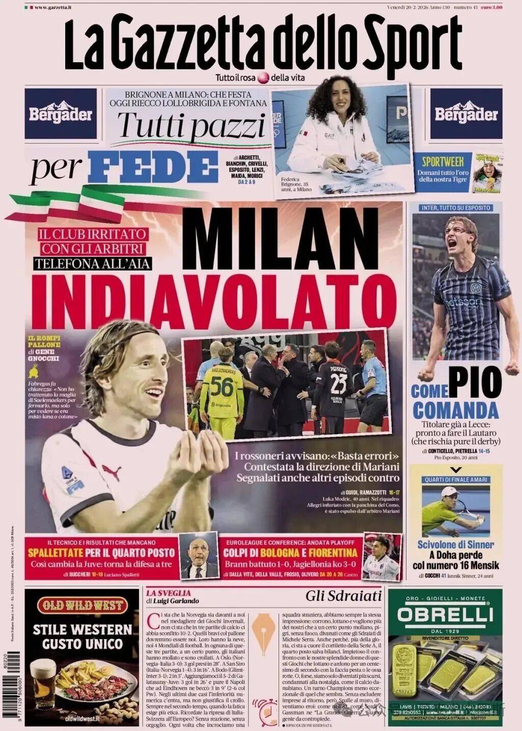 1. ความโกรธของมิลาน: สโมสรโกรธมากกับผู้ตัดสินและได้ติดต่อสมาคมผู้ตัดสินอิตาลี (AIA) แล้ว ทีมรอสโซเนรีได้ออกคำเตือนว่า "ไม่มีความผิดพลาดอีกต่อไป" การประท้วงต่อการตัดสินของมาริอาเนียนได้ส่งสัญญาณถึงเหตุการณ์ที่อาจเกิดขึ้นอีก