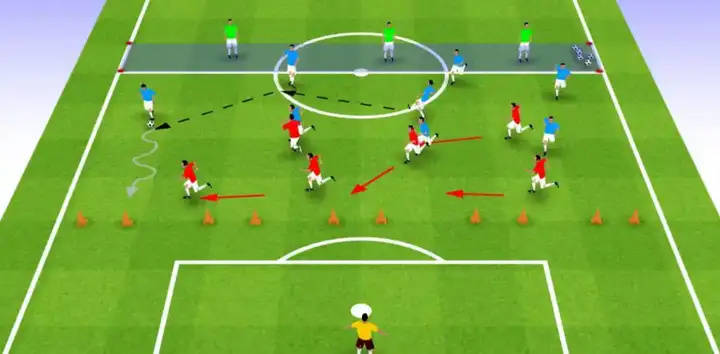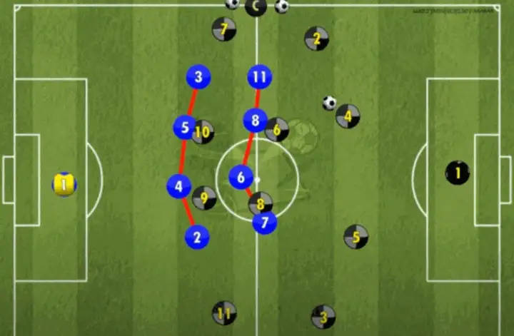 ดังนั้น เมื่อดูการแข่งขัน จะสังเกตได้ว่าเมื่อผู้เล่นหมายเลข 11 ของฝ่ายรุกได้รับบอล เส้นทางข้างหน้าจะถูกปิดกั้นอย่างสมบูรณ์ และเพื่อนร่วมทีมหมายเลข 9 และหมายเลข 10 ที่อยู่ใกล้เคียงไม่มีพื้นที่ในการรับบอล ในจุดนี้ ทางเลือกเดียวที่เป็นไปได้คือส่งบอลกลับ