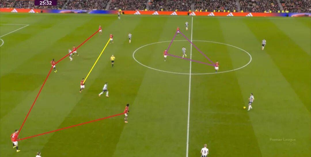 นี่คือการแสดงออกถึงความวิตกกังวลอย่างชัดเจน เขารู้สึกว่านิวคาสเซิล ยูไนเต็ดกำลังจะทะลวงแนวรับของแมนเชสเตอร์ ยูไนเต็ดได้ โดยเฉพาะอย่างยิ่งเมื่อสาลิกาดงเตรียมส่งผู้เล่นสำรองลงสนามเพื่อสร้างแรงกดดันในเกมรุกมากขึ้น อโมริมตัดสินใจอย่างรวดเร็ว ส่งโจรัมลงสนามเพื่อจัดแนวรับเป็นสี่คน โดยมีดอร์โกและดาล็อตยืนอยู่ด้านหน้า