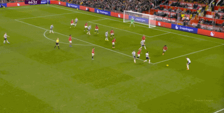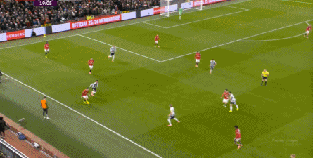 แม้ในโอกาสนี้ที่แมนเชสเตอร์ ยูไนเต็ดทำผิดพลาดในแดนของตัวเอง คาเซมิโร่ก็เข้ามาช้าในการท้าทาย แต่อูการ์เต้มาถึงทันเวลาเพื่อกดดันโวลเทเมด และร่วมกับเฮย์เวิร์ด พวกเขาสามารถแย่งบอลกลับมาได้: