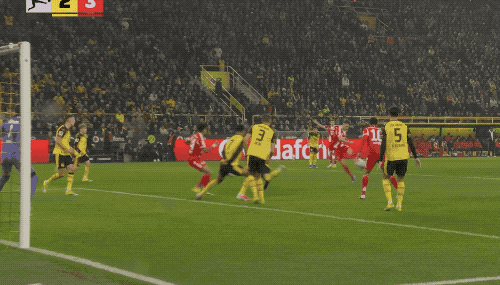 ในนาทีที่ 54 กองหลังของโบรุสเซีย ดอร์ทมุนด์ล่อให้ฝ่ายตรงข้ามล้ำหน้า โจชัว คิมมิชส่งบอลทะลุช่อง เซอร์จ นาบรีย์วิ่งเข้าหาบอลอย่างแม่นยำเพื่อเอาชนะกับดักล้ำหน้าและโหม่งบอลข้ามหน้าประตูให้แฮร์รี่ เคนยิงเข้าประตูไป
