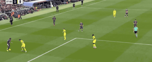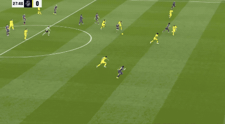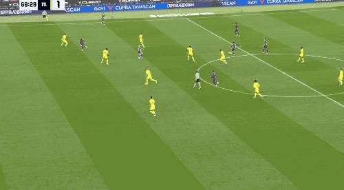 ในนาทีที่ 48 บียาร์เรอัลสร้างโอกาสอันตรายจากลูกเตะมุม ขณะที่ราฟินญ่าอยู่ในตำแหน่งหลังแนวรับ ประตูของเกย์จึงไม่ล้ำหน้า
