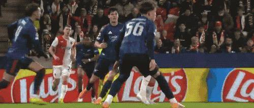 ซาก้า ยืนอยู่เหนือจุดโทษ หันหน้าไปทางผู้รักษาประตูของทีมเจ้าบ้านโดยไม่ลังเลแม้แต่วินาทีเดียว เขาปล่อยลูกยิงที่ทรงพลัง ส่งบอลเข้าไปในตาข่ายอย่างมั่นคง