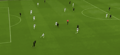 ในนาทีที่ 41 โปรตุเกสได้ตำแหน่งฟรีคิกที่มีโอกาสในแดนรุก ด้วยคริสเตียโน่ โรนัลโด้ถูกแบน โจเอา เนเวสจึงก้าวขึ้นมาเตะฟรีคิก เนเวสยิงลูกด้วยโค้งที่สวยงาม ส่งลูกบอลเข้าตรงมุมบนเพื่อขยายการนำของโปรตุเกสในช่วงทดเวลาบาดเจ็บของครึ่งแรก โปรตุเกสได้ลูกเตะมุมอีกครั้ง ดิโอโก้ โชต้า ถูกดึงล้มลงในกรอบเขตโทษ ทำให้ผู้ตัดสินเป่าจุดโทษ บรุโน่ แฟร์นันด์ส รับหน้าที่สังหาร โดยหลอกผู้รักษาประตูด้วยการก้าวเท้าเร็วๆ ก่อนยิงเข้าไปอย่างเยือกเย็น ส่งผลให้จบครึ่งแรกด้วยสกอร์ 5-1 โปรตุเกสนำห่างถึงสี่ประตูก่อนเข้าสู่ครึ่งหลัง