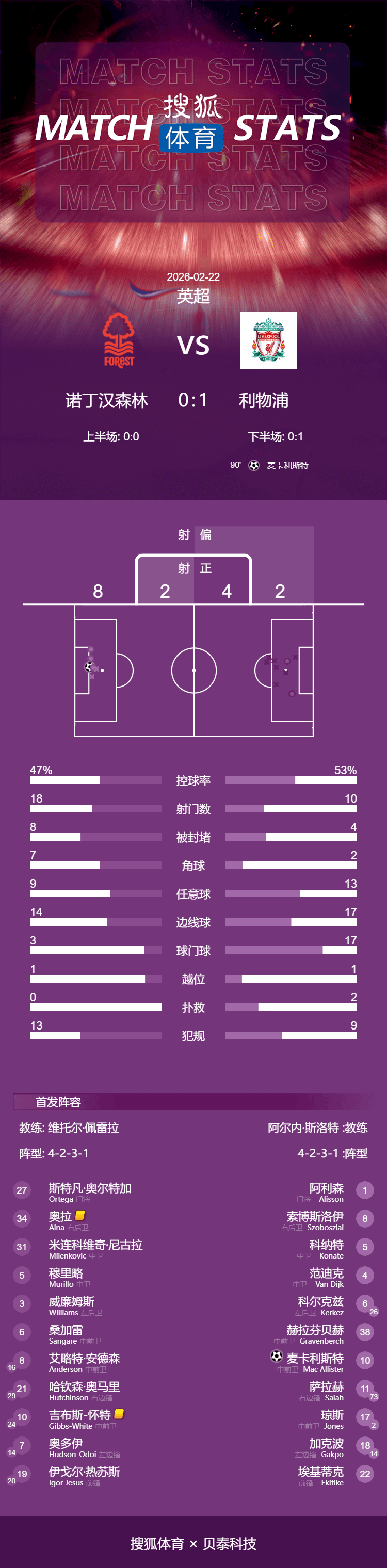 เวลา 22:00 น. ตามเวลาปักกิ่ง วันที่ 22 กุมภาพันธ์ การแข่งขันพรีเมียร์ลีกฤดูกาล 2025-26 นัดที่ 27 ยังคงดำเนินต่อไป โดยลิเวอร์พูลสามารถเอาชนะน็อตติงแฮม ฟอเรสต์ได้ 1-0 ในเกมเยือน นี่ถือเป็นชัยชนะครั้งแรกในสี่นัดที่พบกับฟอเรสต์ และยังทำให้พวกเขามีคะแนนเท่ากับเชลซีและแมนเชสเตอร์ยูไนเต็ดในตารางพรีเมียร์ลีก ลิเวอร์พูลอยู่ในอันดับที่หก โดยมีคะแนนเท่ากันแต่เสียประตูมากกว่าประตูเดียวของเกมเกิดขึ้นในนาทีที่ 97 โดยแม็ค อัลลิสเตอร์เป็นผู้ทำประตูชัย นอกจากนี้ แม็ค อัลลิสเตอร์ยังมีประตูที่ถูกยกเลิกในนาทีที่ 89
