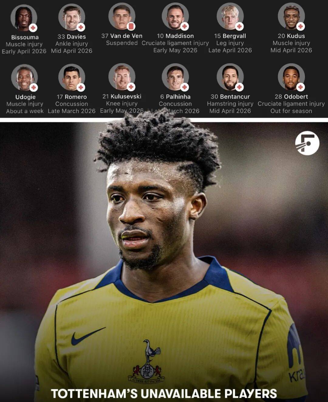 เนื่องจากผู้เล่นทีมชุดใหญ่ที่สำคัญกว่า 10 คน เช่น ปาลิเนีย, โรเมโร และฟาน เดอร์ฟิน ไม่สามารถลงเล่นได้ ผู้เล่นตัวจริงของท็อตแนมในเกมนี้จึงขาดนายพลรายใหญ่ แต่พวกเขาได้จุดที่มีค่าภายใต้สถานการณ์ที่ไม่เอื้ออำนวยดังกล่าว
