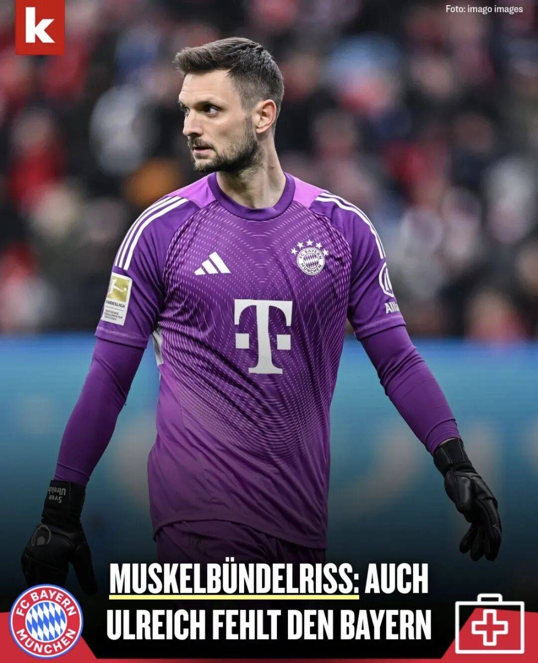 บาเยิร์น ยักษ์ใหญ่ของบุนเดสลีกา ประกาศอย่างเป็นทางการว่ากลุ่มกล้ามเนื้อส่วนเสริมด้านขวาของผู้รักษาประตูของทีม Urreich จะถูกฉีกขาด และจะออกจากแถวชั่วคราว