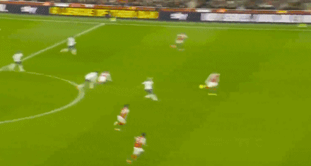 ในนาทีที่ 26 ซูบิเมนดี้จ่ายบอลได้อย่างยอดเยี่ยม ส่งให้ทิมเบอร์วิ่งทะลุขึ้นหน้าอย่างรวดเร็ว แวน เดอ เวน ใช้ร่างกายบังบอลไว้ในพื้นที่เกมรุก แต่วิคาริโอออกมาตัดบอลได้อย่างรวดเร็ว
